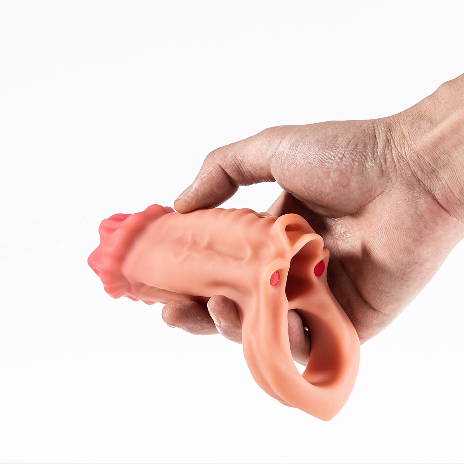• The penis extender sleeve with cock ring combines girth enhancement and erection support in one powerful kit. Its hollow sleeve, with an inner diameter of 3.5 cm and a total length of 15 cm, increases penis thickness, while the textured exterior (granules or rings) and exaggerated Monster-style design deliver intense frictional stimulation and a bold, visually striking experience for both partners.